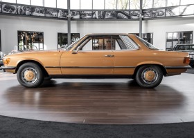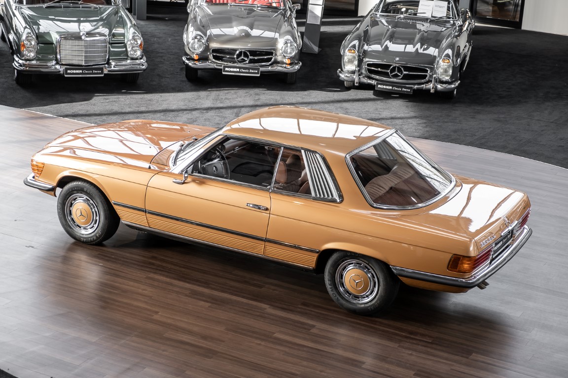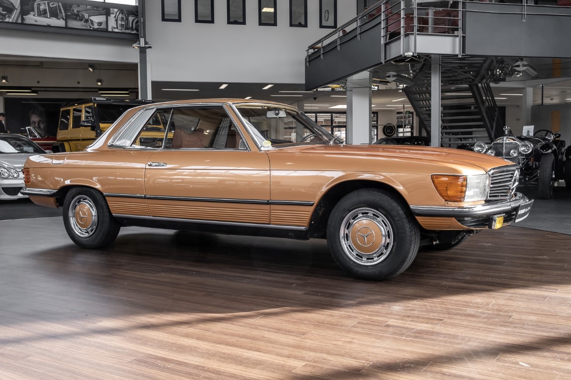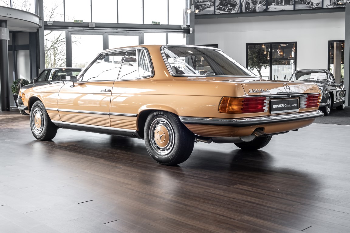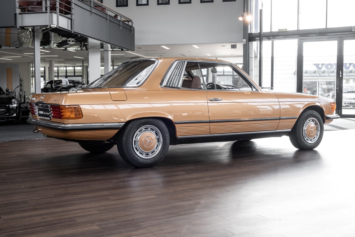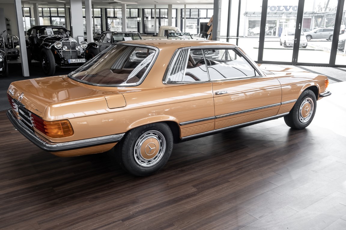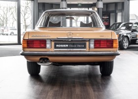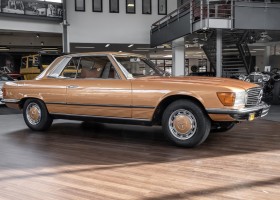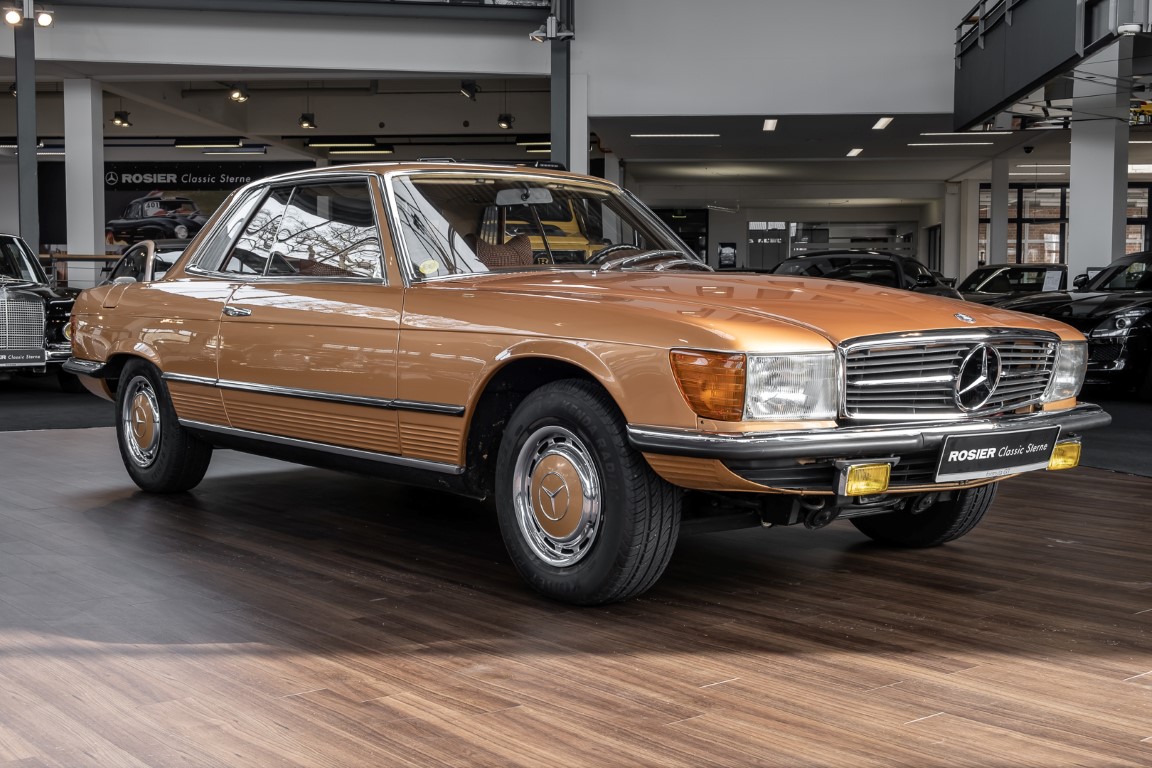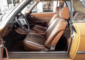 Wir freuen uns Ihnen hier ein ganz besonderes Fahrzeug aus der 107er Reihe präsentieren zu können, ein Mercedes-Benz 350 SLC Coupé aus 1973. Die Farbe „Byzanzgold Metallic“ in Verbindung mit der brauen Stoff/Lederkombination mit Karomuster, spiegelt deutlich den Zeitgeist der 1970er Jahre wieder. Das hier in vollendeter Eleganz präsentierte Coupé wurde 1973 an einen sehr vermögenden Erstbesitzer in Frankreich ausgeliefert. Bei Ihm verblieb der Wagen vermutlich bis 1985. Danach wurde er auf seinen nächsten Besitzer, ebenfalls in Frankreich zugelassen, wie die „Carte Grise“ umgangssprachlich für das französische „Certificat d´Immatriculation“ belegt. Der neue Besitzer behielt das Fahrzeug etwa 27 Jahre in seinem Besitz, bevor er ihn an eine Dame aus Deutschland verkaufte, die das elegante Coupé an den derzeitigen Besitzer, einen erfolgreichen Geschäftsmann aus München verkaufte. Über all die Jahre und Fahrzeugbesitzer hinweg wurde das Fahrzeug nur höchstselten, zuletzt wohl nur noch zu Erhaltungsfahrten bewegt, was die Tacholaufleistung von sagenhaften 50.500 km glaubhaft belegt. Steigen Sie ein und erfahren Sie dieses ganz besondere Luxus-Coupé.