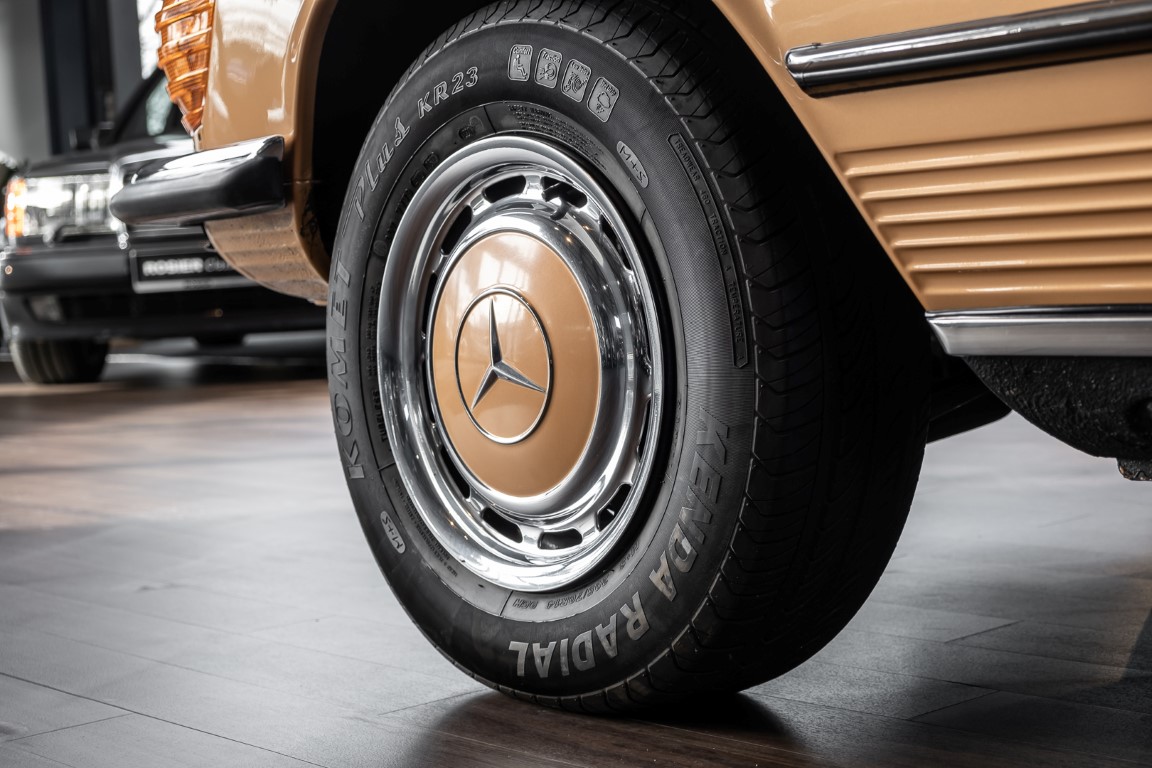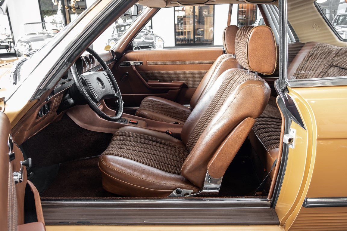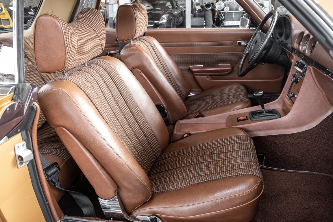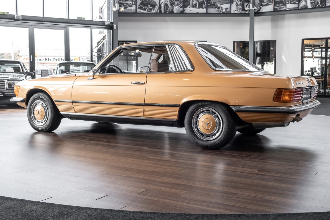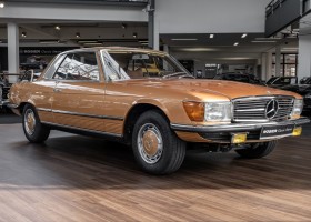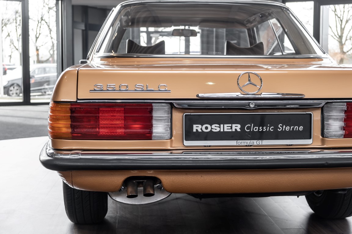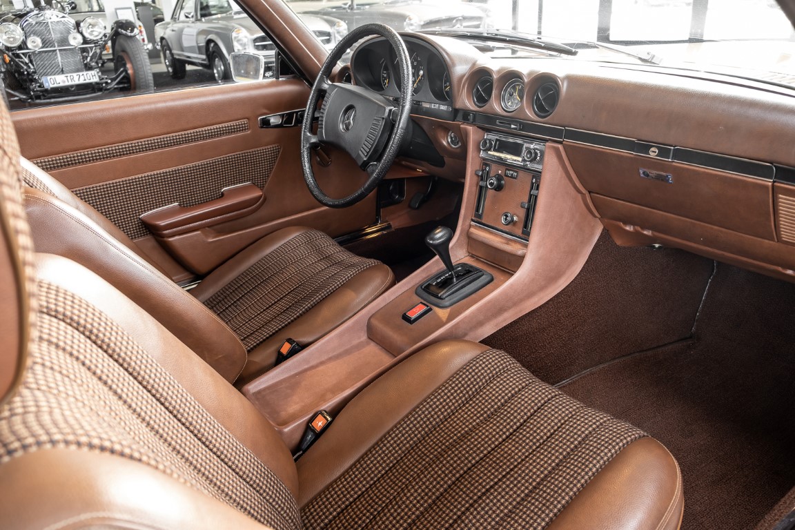 Wir freuen uns Ihnen hier ein ganz besonderes Fahrzeug aus der 107er Reihe präsentieren zu können, ein Mercedes-Benz 350 SLC Coupé aus 1973. Die Farbe „Byzanzgold Metallic“ in Verbindung mit der brauen Stoff/Lederkombination mit Karomuster, spiegelt deutlich den Zeitgeist der 1970er Jahre wieder. Das hier in vollendeter Eleganz präsentierte Coupé wurde 1973 an einen sehr vermögenden Erstbesitzer in Frankreich ausgeliefert. Bei Ihm verblieb der Wagen vermutlich bis 1985. Danach wurde er auf seinen nächsten Besitzer, ebenfalls in Frankreich zugelassen, wie die „Carte Grise“ umgangssprachlich für das französische „Certificat d´Immatriculation“ belegt. Der neue Besitzer behielt das Fahrzeug etwa 27 Jahre in seinem Besitz, bevor er ihn an eine Dame aus Deutschland verkaufte, die das elegante Coupé an den derzeitigen Besitzer, einen erfolgreichen Geschäftsmann aus München verkaufte. Über all die Jahre und Fahrzeugbesitzer hinweg wurde das Fahrzeug nur höchstselten, zuletzt wohl nur noch zu Erhaltungsfahrten bewegt, was die Tacholaufleistung von sagenhaften 50.500 km glaubhaft belegt. Steigen Sie ein und erfahren Sie dieses ganz besondere Luxus-Coupé.