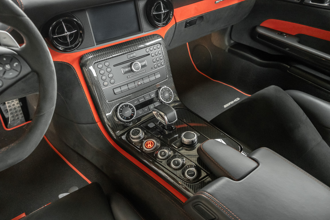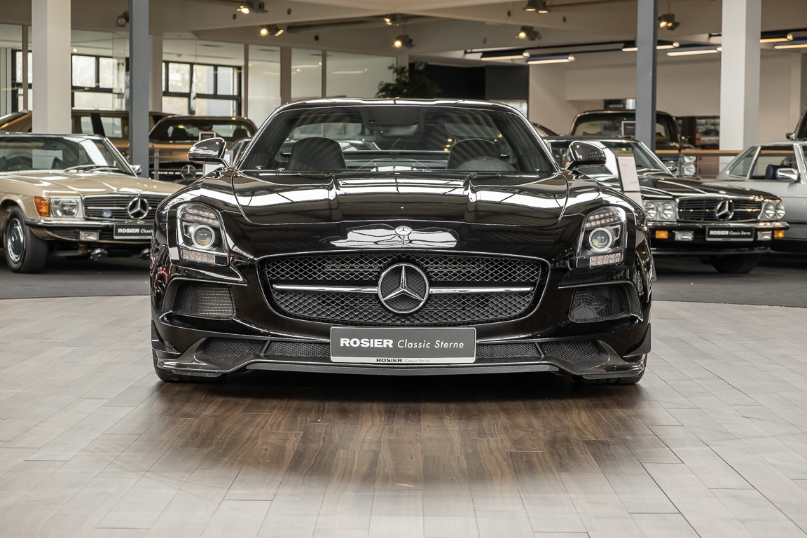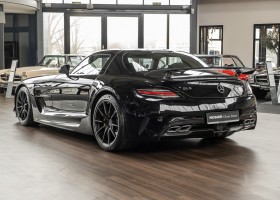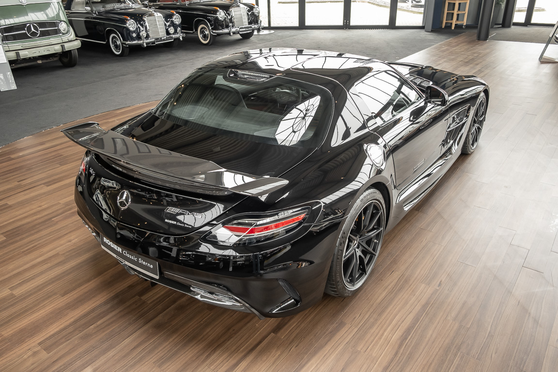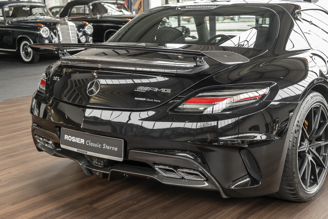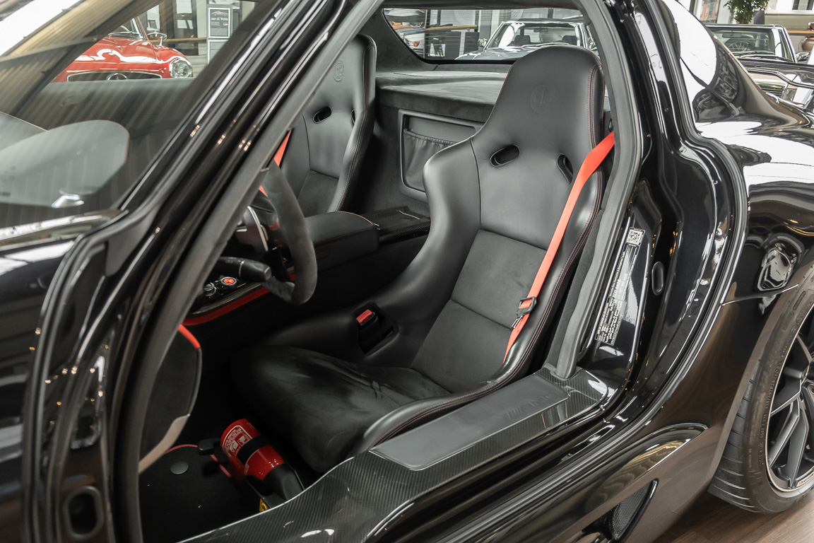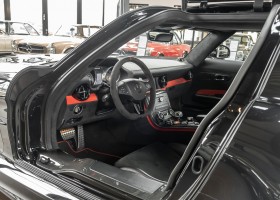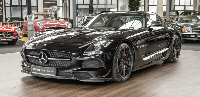 Wir freuen uns, Ihnen die nächste Flügeltür-Ikone nach dem legendären 300 SL anbieten zu können. Der Mercedes-Benz SLS AMG Black Series wurde in Kleinserie, in einer streng limitierten Auflage von 350 Fahrzeugen, aufgelegt und ist für Sammler weltweit ein hochinteressantes Schmuckstück. Mit 631 PS stellt der 6,3l-V8-Saugmotor nicht nur 60 PS mehr Leistung als der Serien SLS bereit, dank intelligentem Leichtbau sorgt der Black Series für Fahrperformance wie ein Rennfahrzeug. Zumindest in der Theorie. In der Praxis wurden die Black Series Modelle trotz Rennsportgenen durch rasant steigende Preise zumeist gelagert und kaum bewegt.
