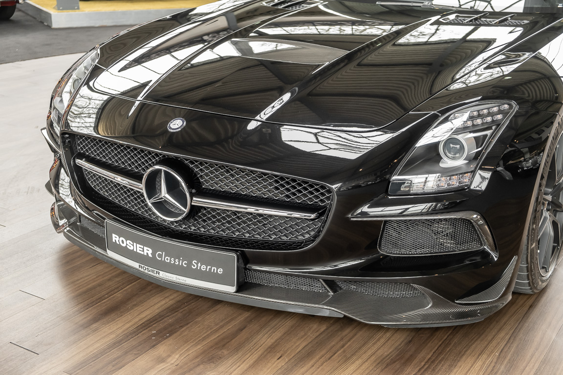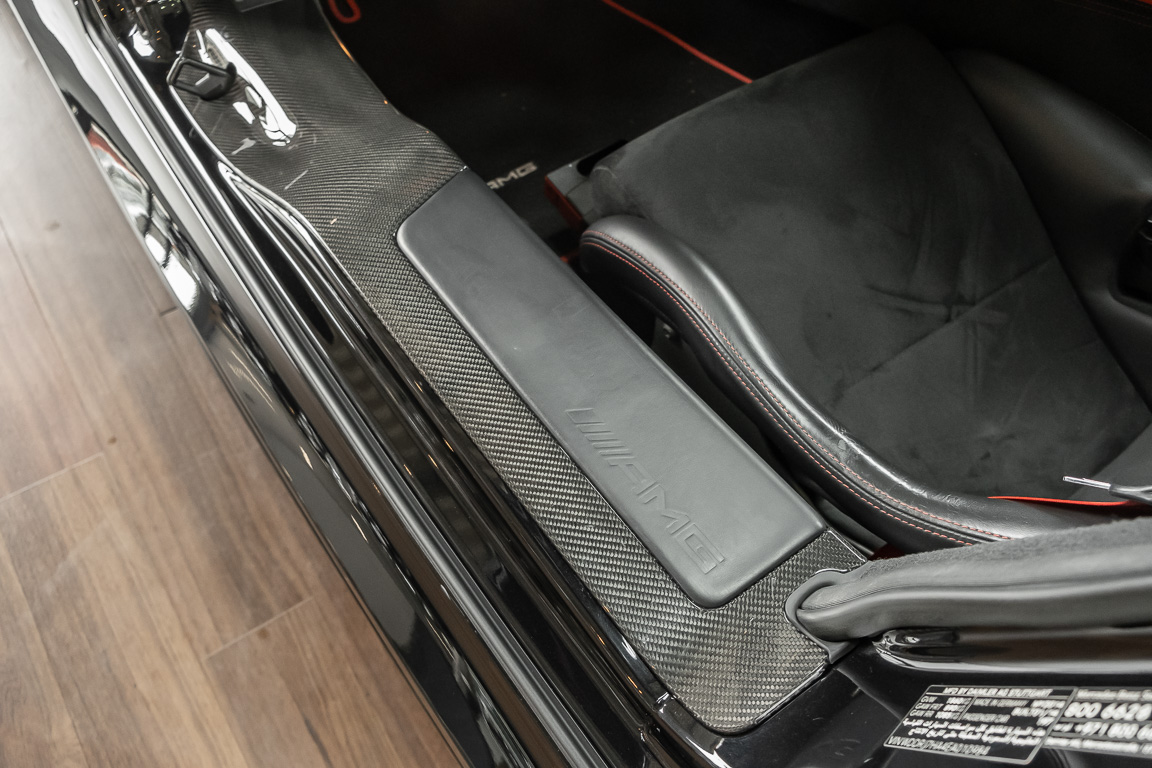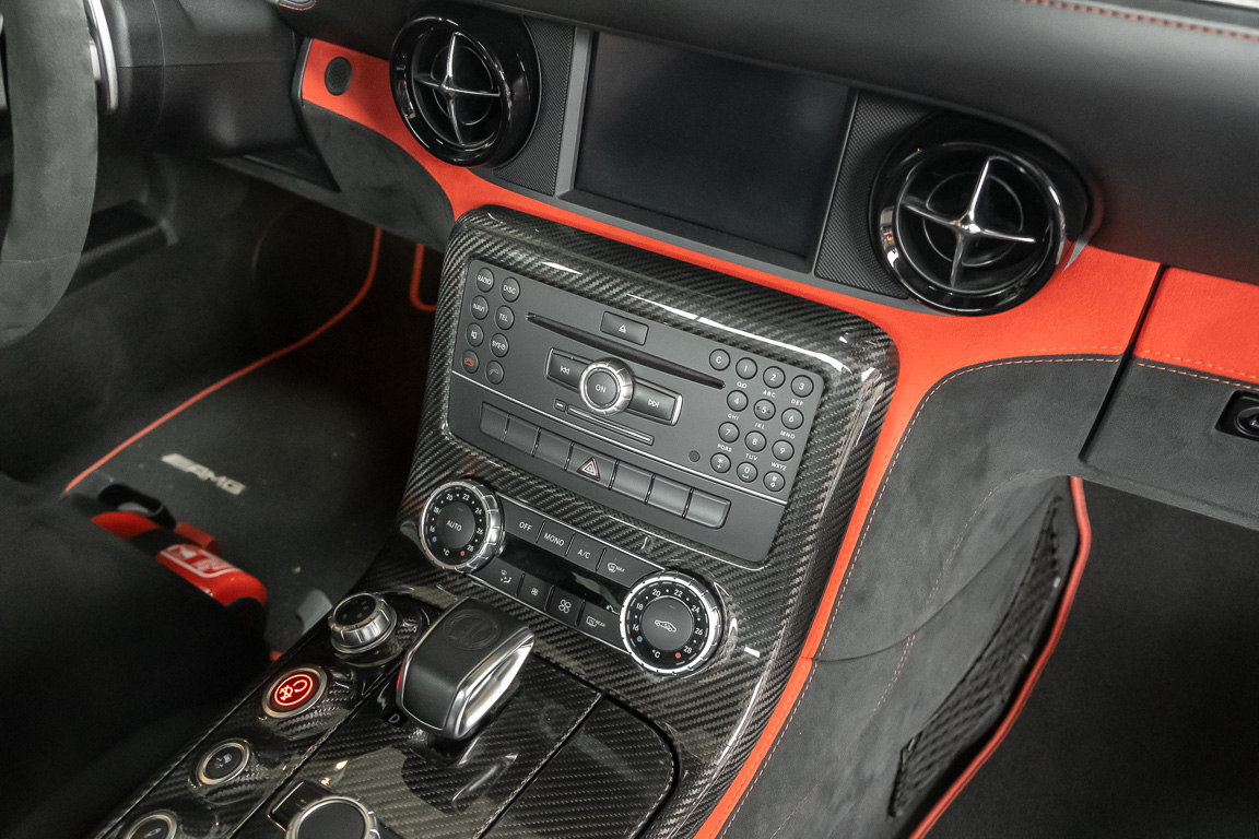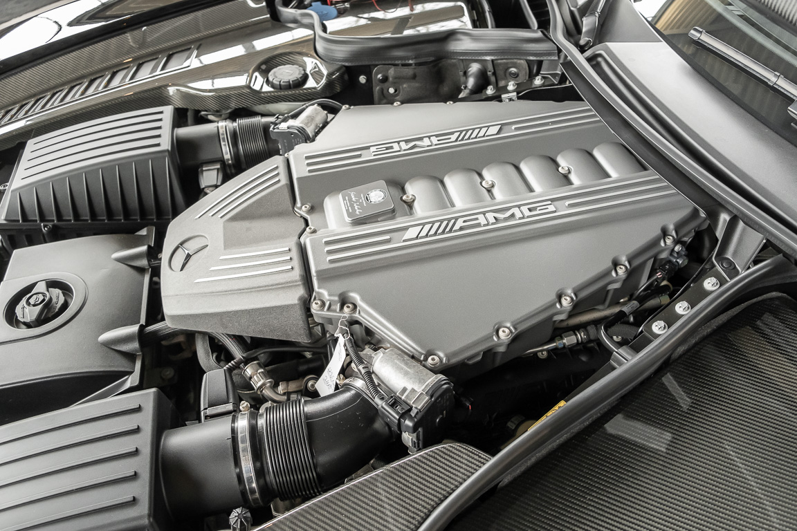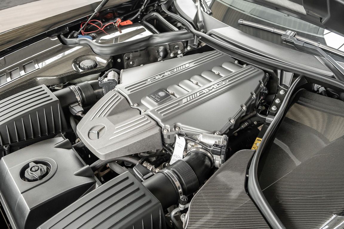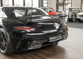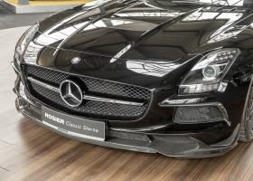 Wir freuen uns, Ihnen die nächste Flügeltür-Ikone nach dem legendären 300 SL anbieten zu können. Der Mercedes-Benz SLS AMG Black Series wurde in Kleinserie, in einer streng limitierten Auflage von 350 Fahrzeugen, aufgelegt und ist für Sammler weltweit ein hochinteressantes Schmuckstück. Mit 631 PS stellt der 6,3l-V8-Saugmotor nicht nur 60 PS mehr Leistung als der Serien SLS bereit, dank intelligentem Leichtbau sorgt der Black Series für Fahrperformance wie ein Rennfahrzeug. Zumindest in der Theorie. In der Praxis wurden die Black Series Modelle trotz Rennsportgenen durch rasant steigende Preise zumeist gelagert und kaum bewegt.