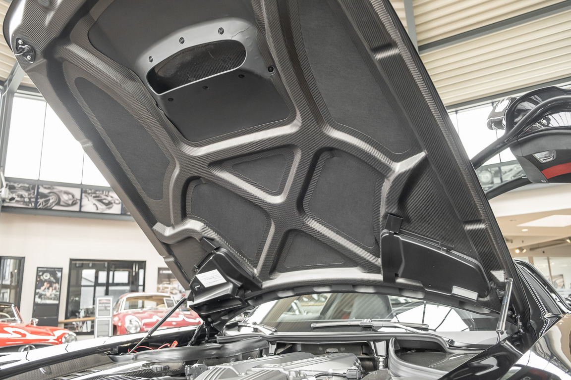 Wie auch dieses Exemplar. Das Fahrzeug wurde am 30. Januar 2014 an seinen Bestimmungsort in den mittleren Osten ausgeliefert und ergänzte dort, allem Anschein nach, eine erlesene Fahrzeugsammlung. Mit einer sensationellen Laufleistung von nur 3.420 km und einem absolut neuwertigen Zustand gelang das Fahrzeug im Jahre 2022 aus Dubai zurück in sein Heimatland Deutschland und schließlich in unser Haus.