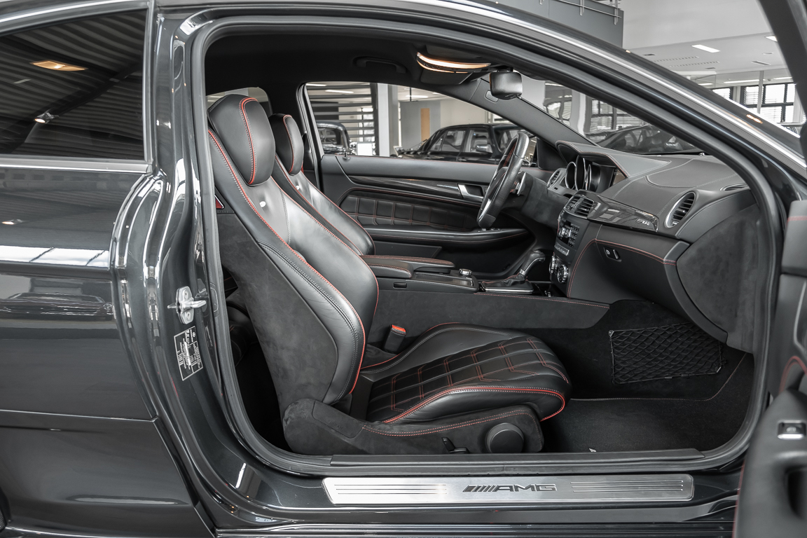 Wir freuen uns, Ihnen dieses C 63 AMG Coupé in der seltenen Black Series Ausführung anbieten zu dürfen. Als höchste Ausbaustufe der Baureihe 204 schöpft der Black Series 517 PS aus 6,3 Liter Hubraum. Die Emotionen, die dieser letzte echte AMG Sauger weckt, sind nur schwer Worte zu fassen. Die Sonderlackierung in Schwarz Metallic in Kombination schwarzem Leder und roter Ziernaht steht diesem Black Series wie ein Maßanzug. Das Fahrzeug ist komplett gewartet und wird mit frischer HU/AU an seinen neuen Besitzer übergeben. Nutzen Sie diese besondere Gelegenheit und erfahren Sie den Mythos dieses Black Series.