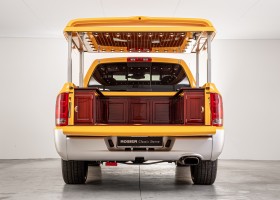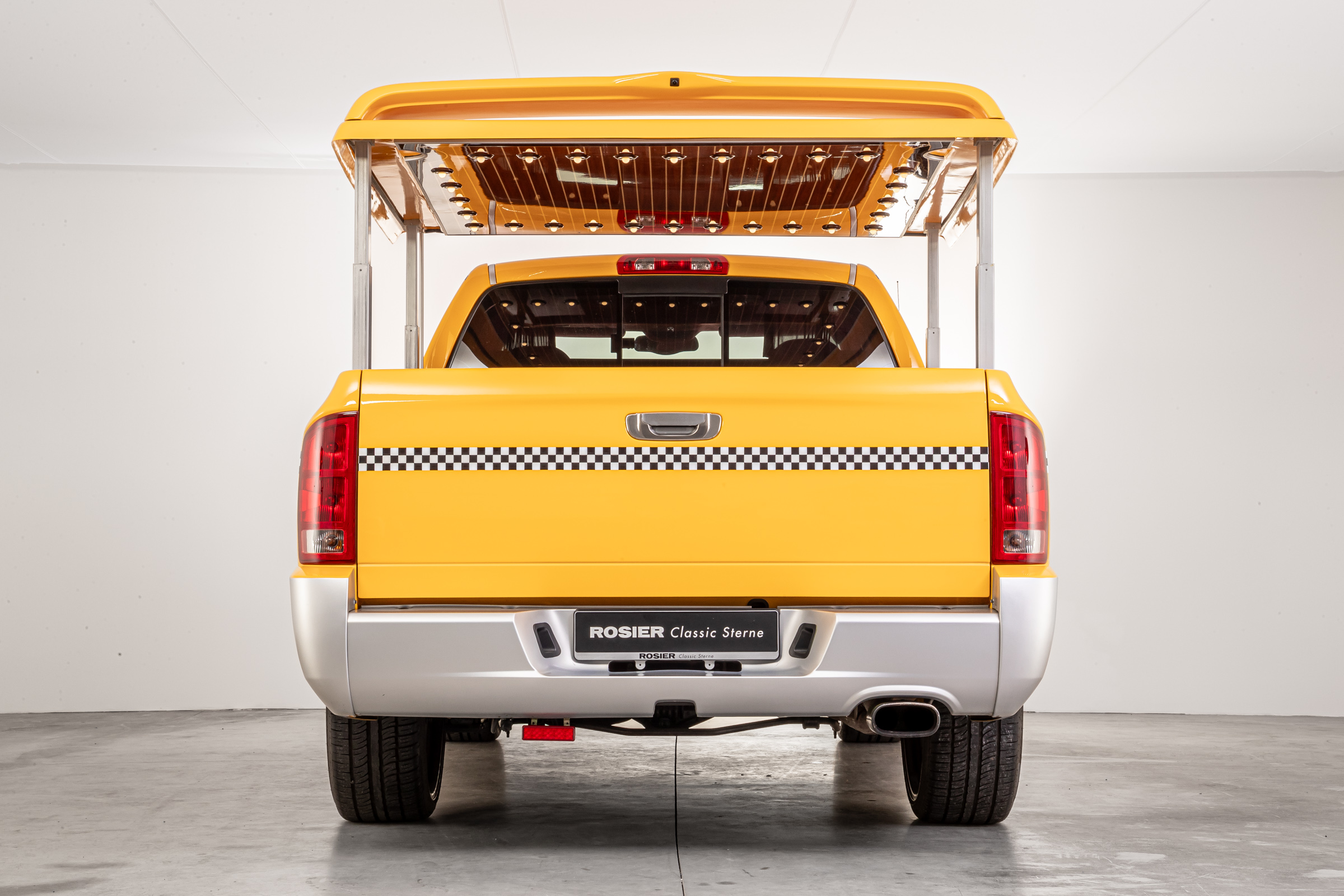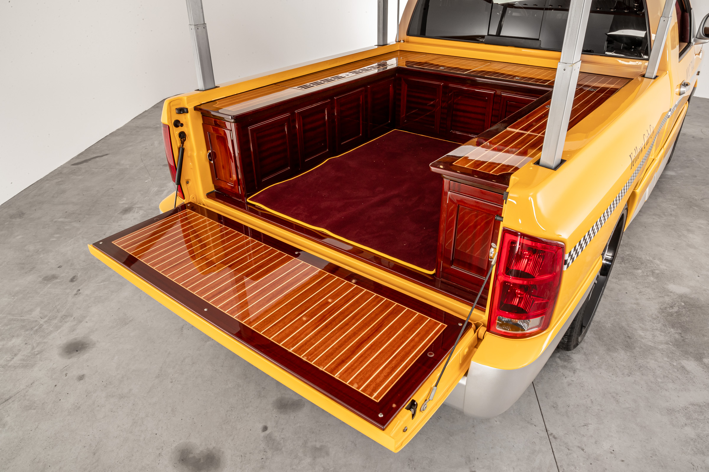 An elaborate two-layer paintwork in the legendary NYC cab design means that this unique RAM attracts attention from afar, which will not soon fade due to its unique appearance. All kinds of technical features, such as a powerful audio system, a starry sky and an ice cube machine with refrigerator, will make the heart of any enthusiast beat faster! The highlight is revealed when the vehicle is stationary, when the electric rear cover provides a view of the completely new loading area, also with a ship's look. An absolute show magnet whose uniqueness is beyond question.