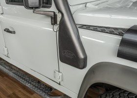 An outdoor camping fan saw this seven-seater as the ideal basis for a (large) family vehicle, which he had fitted with a roof tent and off-road caravan. The conversion to left-hand drive makes this already special Defender 147 unique. An extensive entertainment system and air conditioning ensure pleasant journeys, no matter how remote you are traveling.