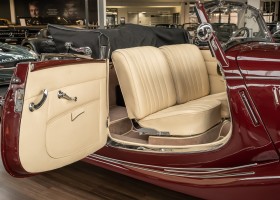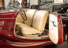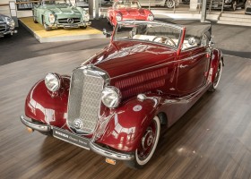 This Mercedes-Benz 170V Cabriolet A from 1938 is a convertible dream with a great history. The car was delivered to Jürgen Voigts in Voigtsgrund in the Gibeon district in October 1938 via the Metje + Ziegler dealership in Windhoek, Namibia, which still exists today. At that time, the farm of the respected German-born Voigts family already covered 160,000 hectares of mostly private land and was known for its herds of 17,000 Karakul sheep. The wagon remained in Namibia during the war years and only returned to Germany after the war. It found its home in the Munich area and in the mid-1960s belonged to the actor Danilo Zschauer from Munich, among others, as can be seen from the original cardboard letter. On August 25, 1978, the convertible came into the possession of a highly successful entrepreneur in the Märkischer Kreis district of North Rhine-Westphalia, according to the original purchase contract available to us. He took excellent care of the car and maintained it, but decided in the mid-1980s to carry out a complete restoration. The restoration was of such quality that even today, many years later, the car presents itself in almost immaculate condition. It invites you to take stylish trips through picturesque landscapes with endless convertible pleasure.