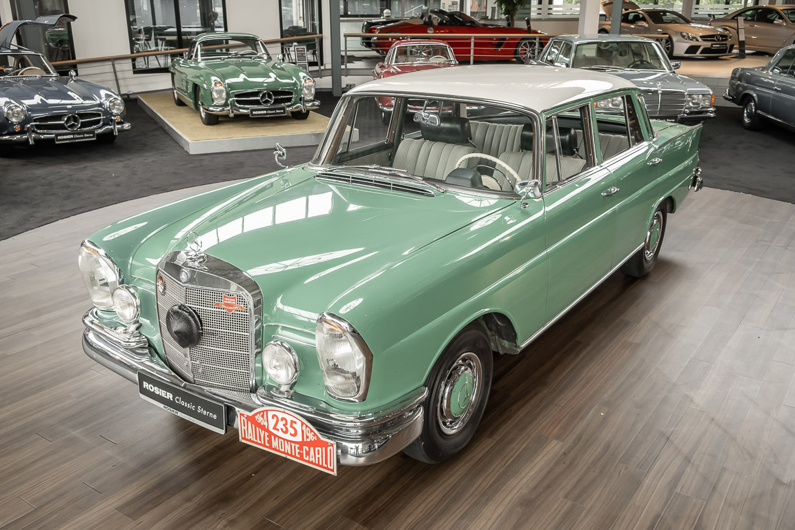 Hardly available on the market are original rally cars from the 1950s and 1960s. Mostly, the vehicles were used in parallel in normal road traffic and their glorious double life was not known to the public. We are very pleased to be able to offer you a great original with an impressive rally history in the form of the car offered here. This Mercedes-Benz 220S sedan was completed in 1963 in the factory and immediately after its delivery to the then first owner, modified according to the specifications of the rally regulations in force in 1963. Various body reinforcements were made, better headlights and auxiliary headlights were installed, as well as sports shock absorbers. The engine was modified so that it could cope with fuel of poorer quality.