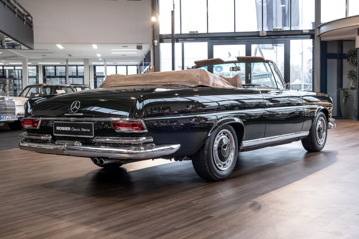 A sensational vehicle is this Mercedes-Benz 250 SE factory convertible. Delivered to its first owner in 1967, the Cabriolet remained in the USA until 2006. A German businessman and Mercedes enthusiast then acquired this "rough diamond" to create something very special: the car was completely dismantled down to the bodyshell and rebuilt piece by piece. A powerful 8-cylinder aggregat from that time was installed and the transmission was adjusted to it. The longer rear axle ratio of what was then the most powerful saloon model rounded off the powerhouse accordingly and did its job with astonishing harmony. With only 954 units built, this unique high-cooler factory convertible presents itself in top form - with an all-round successful conversion that will fascinate even die-hard lovers of originality.
