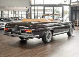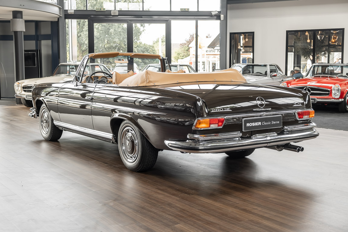 This elegant 280SE 3.5 liter convertible was completed at Mercedes-Benz in Germany in the spring of 1971 and shipped to South Carolina/USA. The equipment was excellent and included a Becker radio, air conditioning from BEHR and automatic transmission with center shift. The first owner had ordered the car in elegant tobacco brown combined with cognac leather interior, which harmonized particularly well with the dark brown burl wood finish of the dashboard. The elegant convertible remained in South Carolina for many years and found its way to Georgia/USA in 2012. From there, the car came to Germany in 2014 and was sold to its previous owner through the Mercedes-Benz branch in Hanover. The car was carefully overhauled and received a new leather interior of the finest quality. It impressively underlines the sheer elegance of this 280 SE 3.5 liter convertible. Best make yourself a picture in our premises, you will be thrilled.