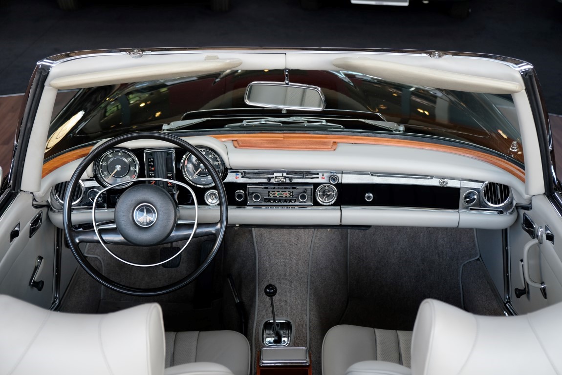 They were just around 70 years old and wanted to fulfill a long-cherished dream.They had a lot of fun at the pagoda. You kept the pagoda for about 12 years and did not give it until you decided to move to a retirement home. So the car came to Germany, to Rosier Classic sterne in Oldenburg. Here the car was subjected to extensive restoration, in the scope of which the car was completely disassembled and rebuilt. The technique has been revised and a new paint applied. When the car was completed in 2013, he found a new home in the high-quality collection of a long-standing customer of the house. Now that the collection was supplemented by another high-quality classic, had to give way to space of one of the existing vehicles. We had the choice and opted for the black 280 SL pagoda. A dream car that will surely find a new home quickly.