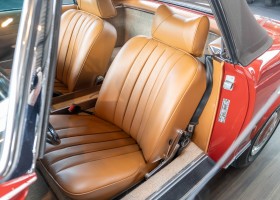An interesting Pagoda with a comprehensible history, which would have been immediately ready for extended trips. Our plans for the vehicle, however, were different. Under our direction, the car underwent an extensive restoration. The task was to achieve a quality restoration at the highest level of craftsmanship. See for yourself, the goal was excellently achieved. The body has been extensively reworked and repainted, axles and transmission have been overhauled, the engine has been tested and fine-tuned after passing the pressure loss test. Powerful running and a clean compression pattern underline the result. To upgrade the interior and give the overall look the final touch, we decided to upgrade the interior with fine leather in cognac instead of the original MB-Tex. A soft top in dark brown makes this Pagoda a real eye-catcher. All in all a special Pagoda, which knows how to convince with its unique charm and inspires with manual transmission. Get in and experience this dream pagoda with all your senses.