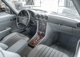 New in the showroom: 300 SL of the 107 model series in anthracite gray metallic in perfect combination with gray check fabric seats. With a mileage of only 41,000 km and a well-maintained Mercedes service booklet this 300 SL presents itself in top condition without exception. The vehicle is currently being reconditioned, further information will follow.