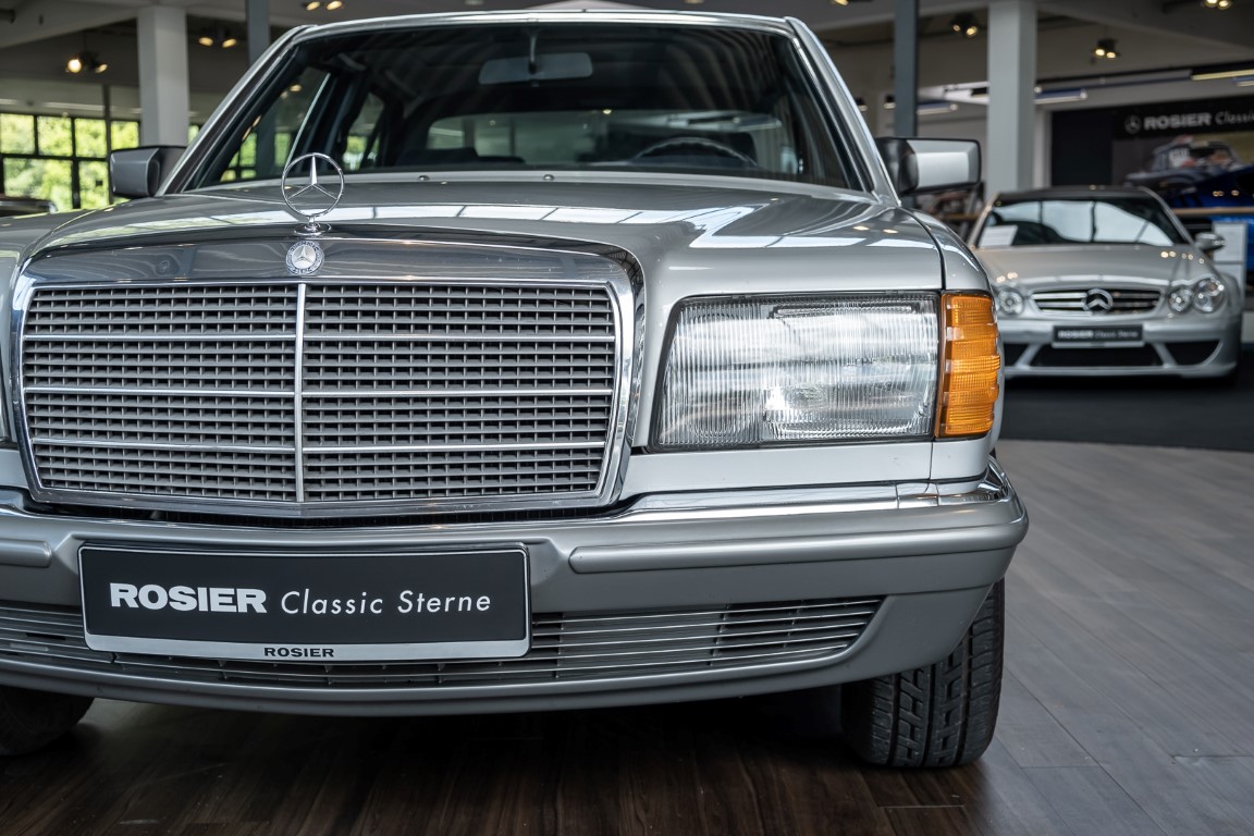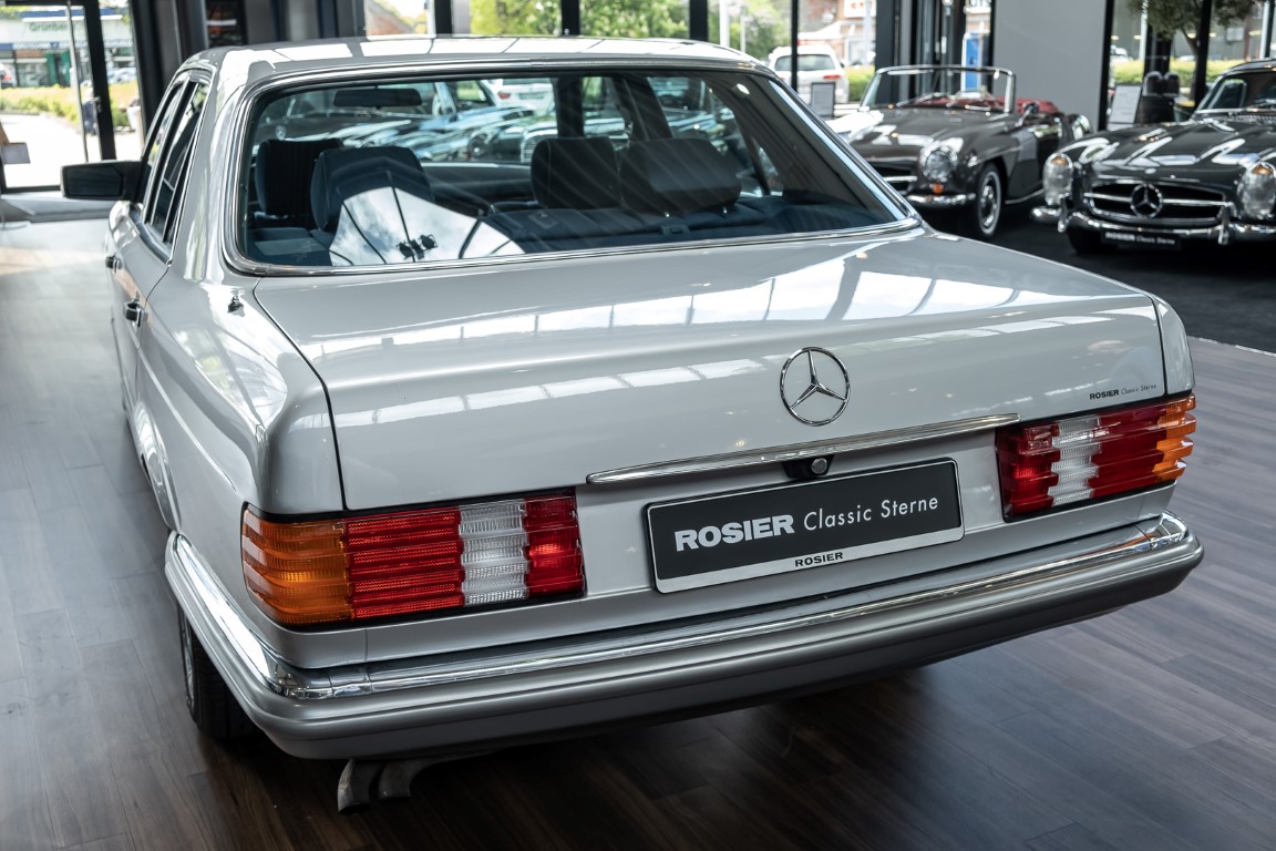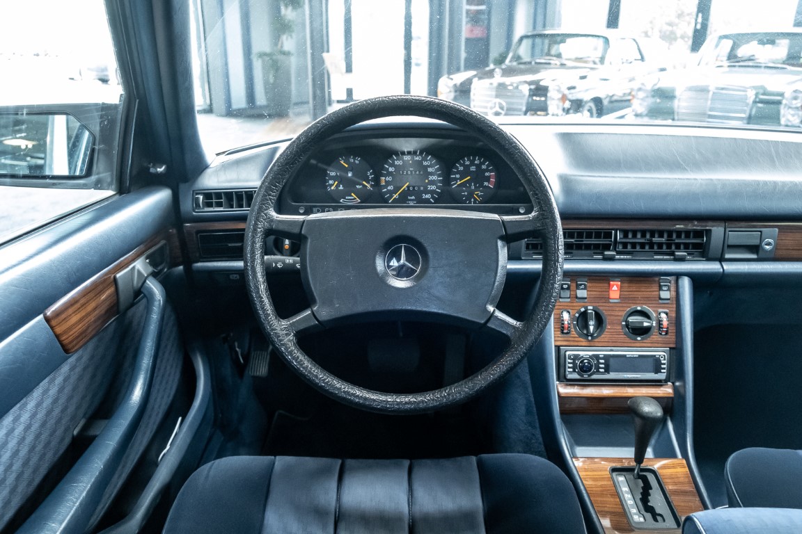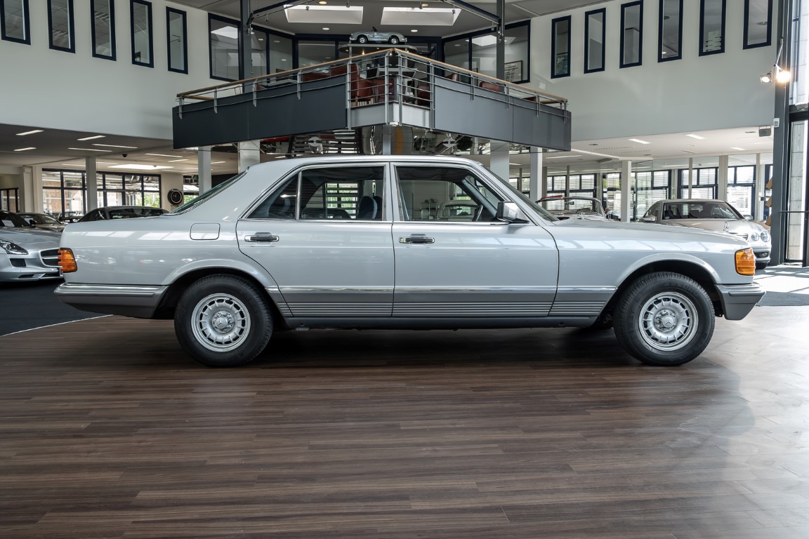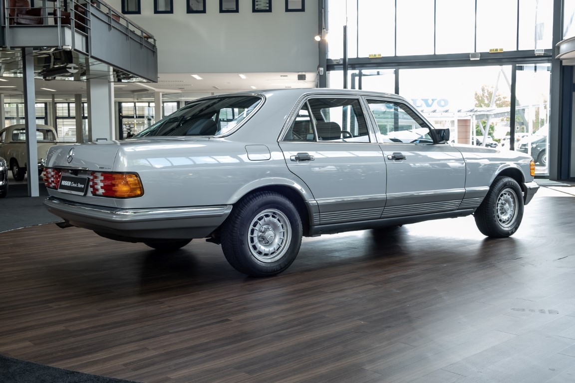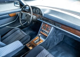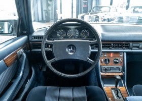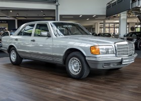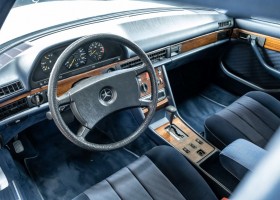 A beautiful 380 SE from the coveted 126 series in astral silver metallic in combination with a blue Interioer from the early 1983 model year is on offer. The cultivated and still bursting with power, the V8 moves the almost 1.6 tonnes unladen weight in all situations in life without any effort. The mileage is comprehensible and, according to the value appraisal, corresponds to the actual mileage. In the summer of 2019, the vehicle received a new transmission in our company. The great engine, a retrofitted KAT and the great driving folding make this 380 SE an excellent Dailydriver.