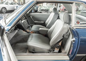 The Mercedes-Benz 560 SL of the 107 series - a timeless symbol of elegance and engineering. The paint finish in Nautical Blue Metallic perfectly matches the interior, whose harmonizing shade of gray, exudes both luxury and comfort and is reminiscent of an era when every detail was constructed with care and dedication. But this classic is not only a feast for the eyes. Throughout the years, its engineering has been lovingly cared for, keeping it as reliable and powerful today as it was on day one. A clean CARFAX confirms the immaculate history of this gem. The vehicle will be delivered to its new owner with a fresh main inspection, an up-to-date service as well as a hardtop.