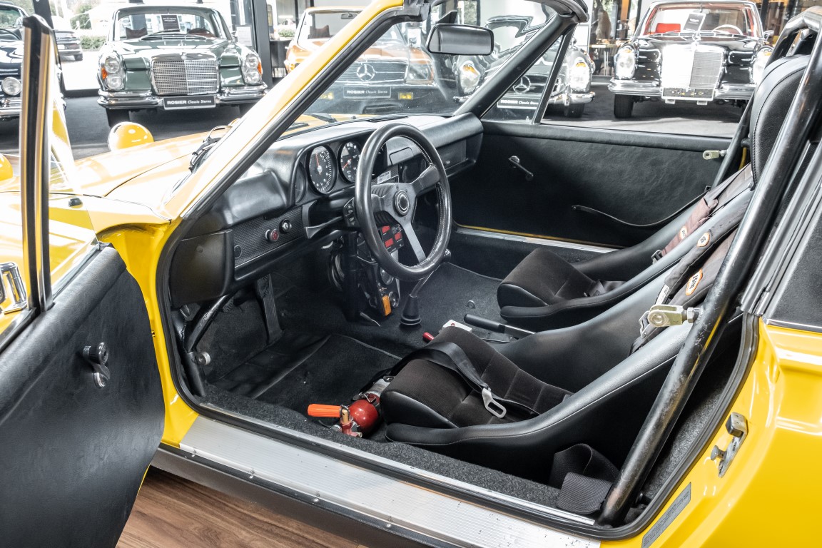 A true rarity is this Porsche 914/6, which is stamped as a "people's Porsche", many of the 914s, with their well-behaved four-cylinder engine, led a shadowy existence behind their superior 911 brothers. This one is completely different: in this Porsche 914/6, which was built for historic racing, the breathtaking boxer power plant from the Carrera RS is at work and produces 295 hp. An absolutely successful conversion, which helps the 914/6 to achieve the driving performance that fans probably would have wished for even back then. "The sports engine from the 911 Carrera 2.8 RS produces 295 bhp and pushes forward that it is the true magnificence. Barking, trumpeting, screeching - this boxer masters the entire musical repertoire of a free-suction racing engine." This is what the specialist magazine for Porsche enthusiasts "9ELF" reported, which extensively portrayed this Porsche 914/6 RS and attested to its 911 affiliation without decency.